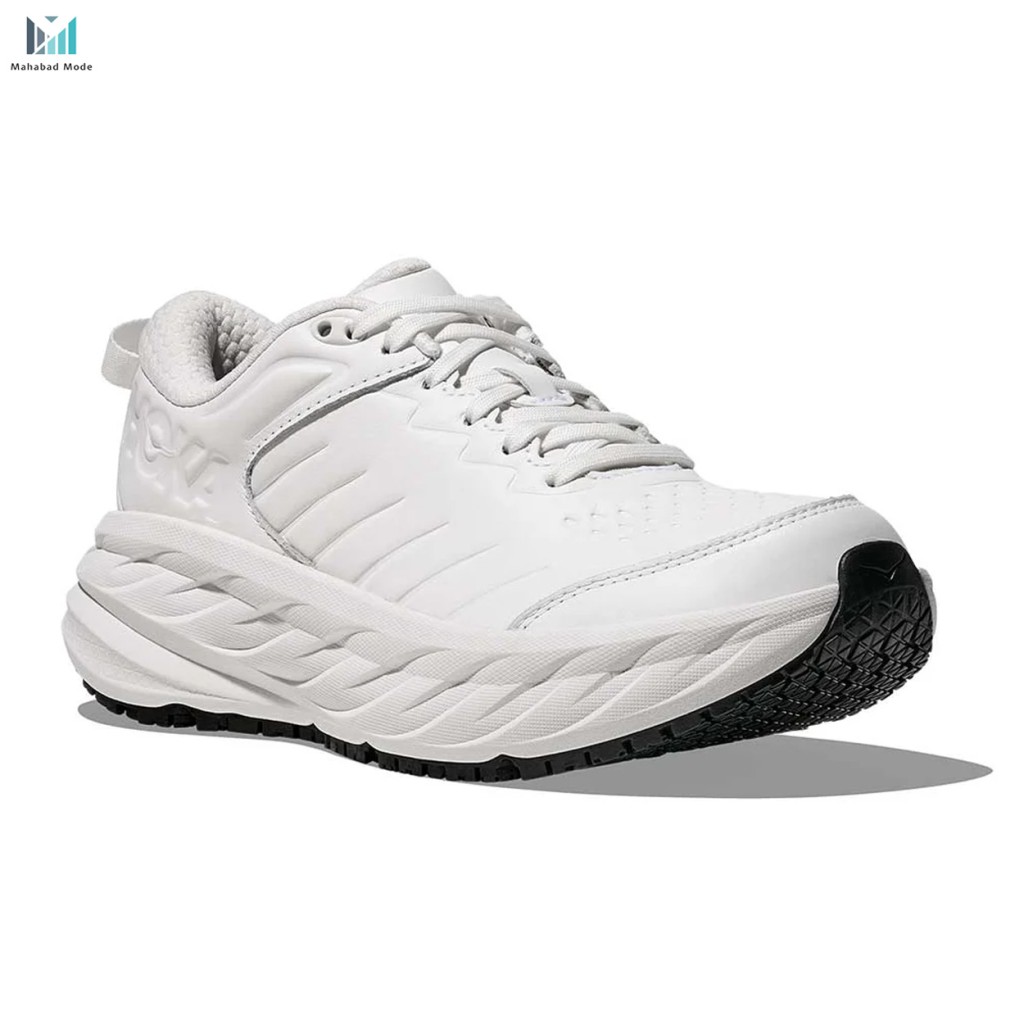 Bondi SR نرمترین کفش را در خط تولید کفشهای جادهای HOKA به خود اختصاص داده و ظاهر آن را برای پاسخگویی به نیازهای زندگی روزمره بازسازی کرده است. این کفش که با چرم ضد آب، زیره ضد لغزش و لایه میانی EVA برای اطمینان از راحتی در تمام طول روز بهروزرسانی شده است، دارای یک لاستیک فوقالعاده چسبنده و کاملاً در تماس با زمین است که مطابق با نیازهای صنعت خدمات و حوزه پزشکی است.